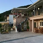 Du kan äta lunch och middag på Bella Vista och Lefkatas.